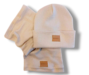 Komplet czapka i komin beżowy 50% bawełny ROZMIARY!